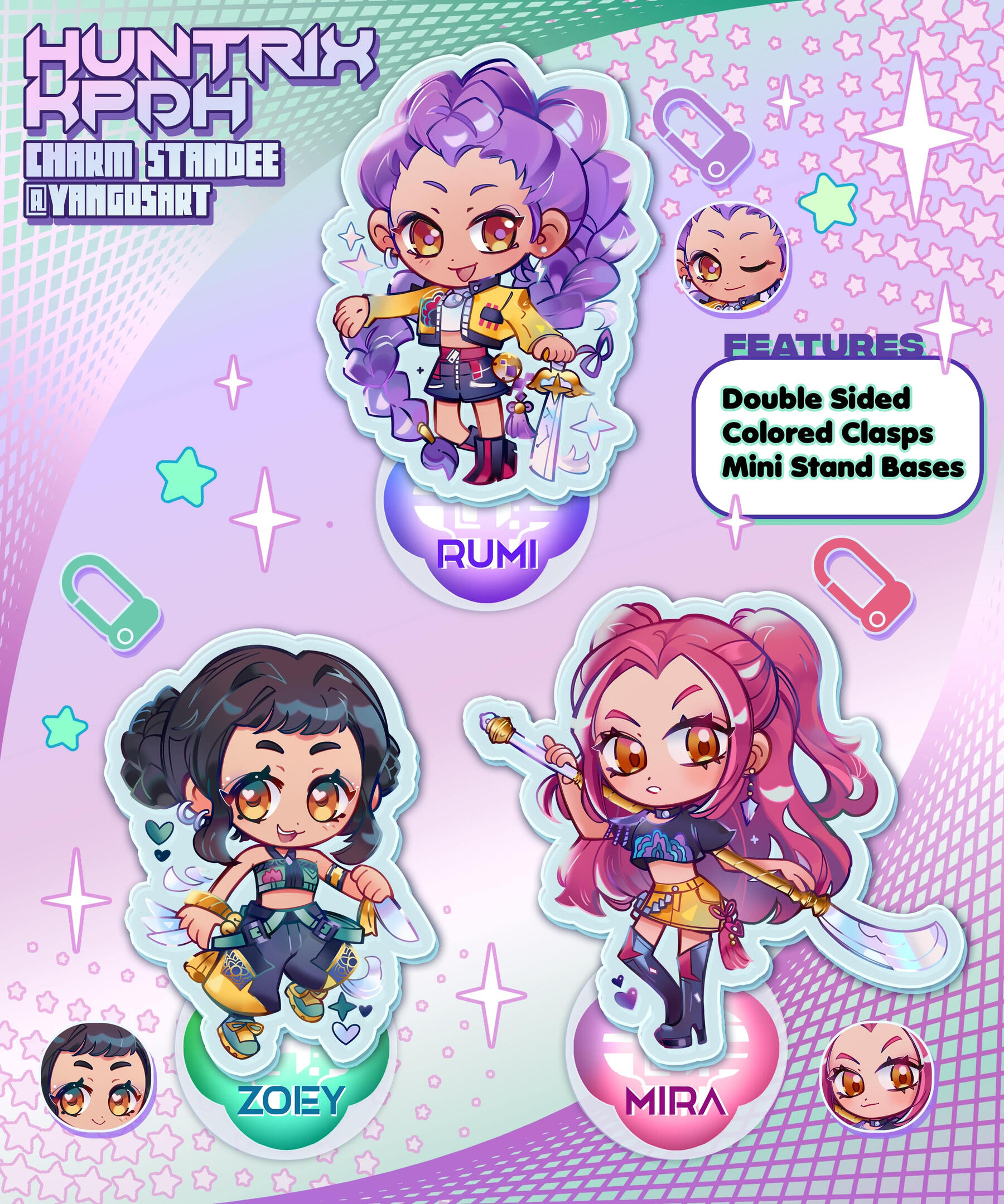 Hello I'm Yangos! I'm a nonbinary hispanic multifandom illustrator/freelance artist based in Florida. Inspired by your favorite shows and games we have art of over 200+ Characters! Such series such as TBHK, Genshin, HSR, Nier, Nintendo, Persona, and much more I make into illustrations and merchandise! If you love cute merch such as enamel pins, buttons, acrylic charms, stands, pillows, prints come on by to Yangoshop!